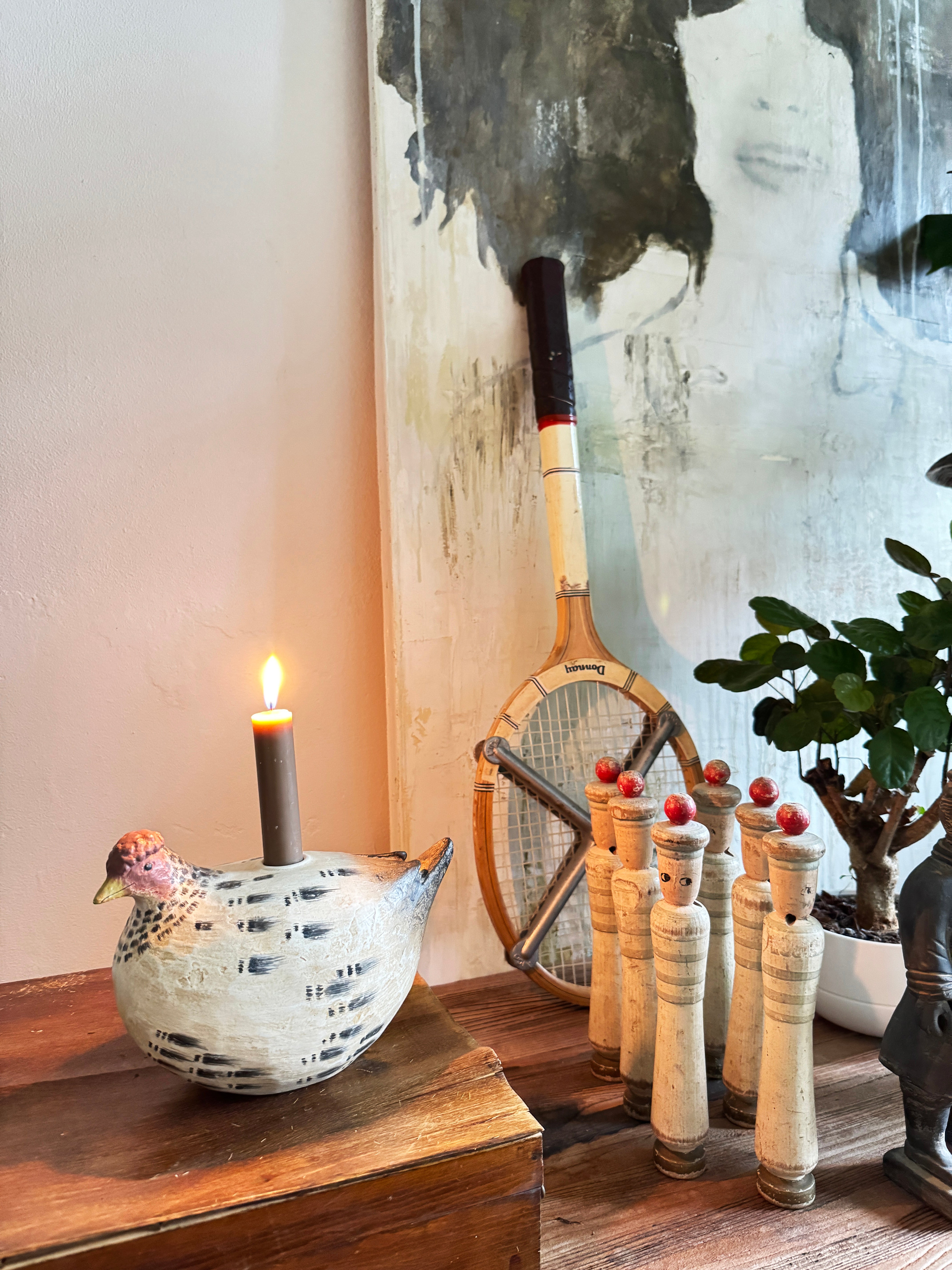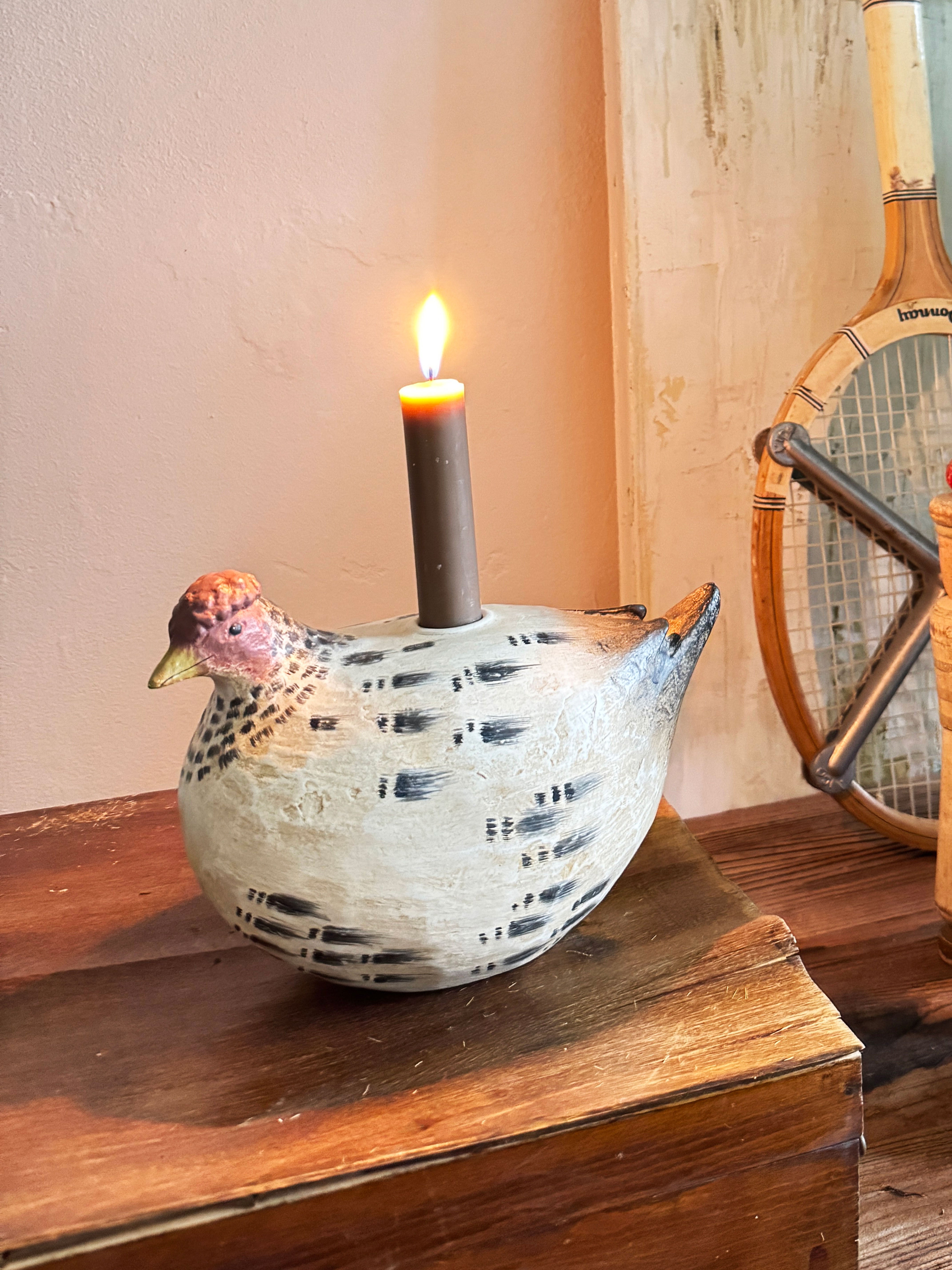 Candleholder - White & black Hen #WAR178