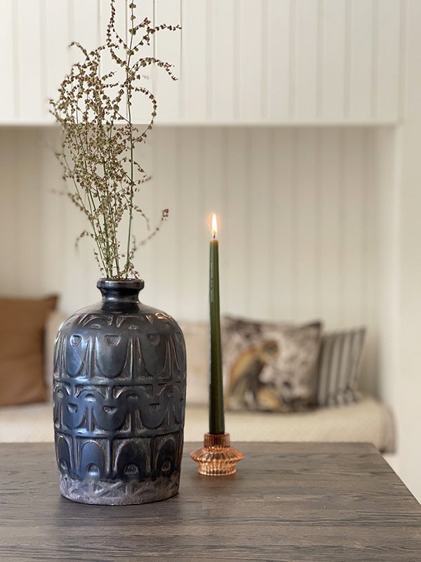 Measuring 5.5cm in height and 8cm in diameter. What’s more, you can style it either way around. It has a candlestick holder on one end and a tealight holder on the other, so depending on the occasion this glass candle holder will always be a welcomed addition to your candle holder collection.