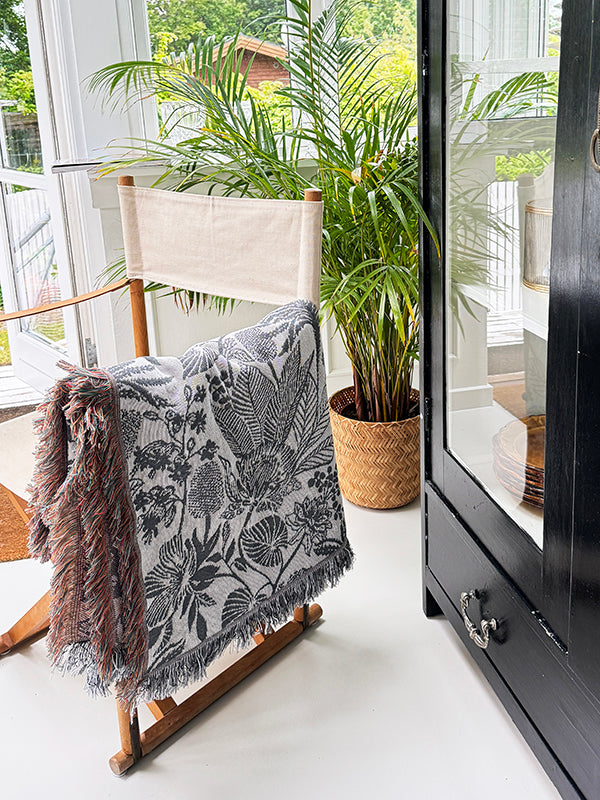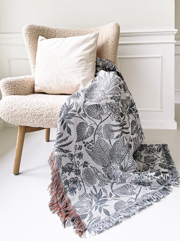 Introducing our exquisite woven blanket, a true masterpiece for art lovers. This jacquard-style blanket is meticulously crafted with passion and expertise, using a premium polycotton blend that ensures both comfort and durability.