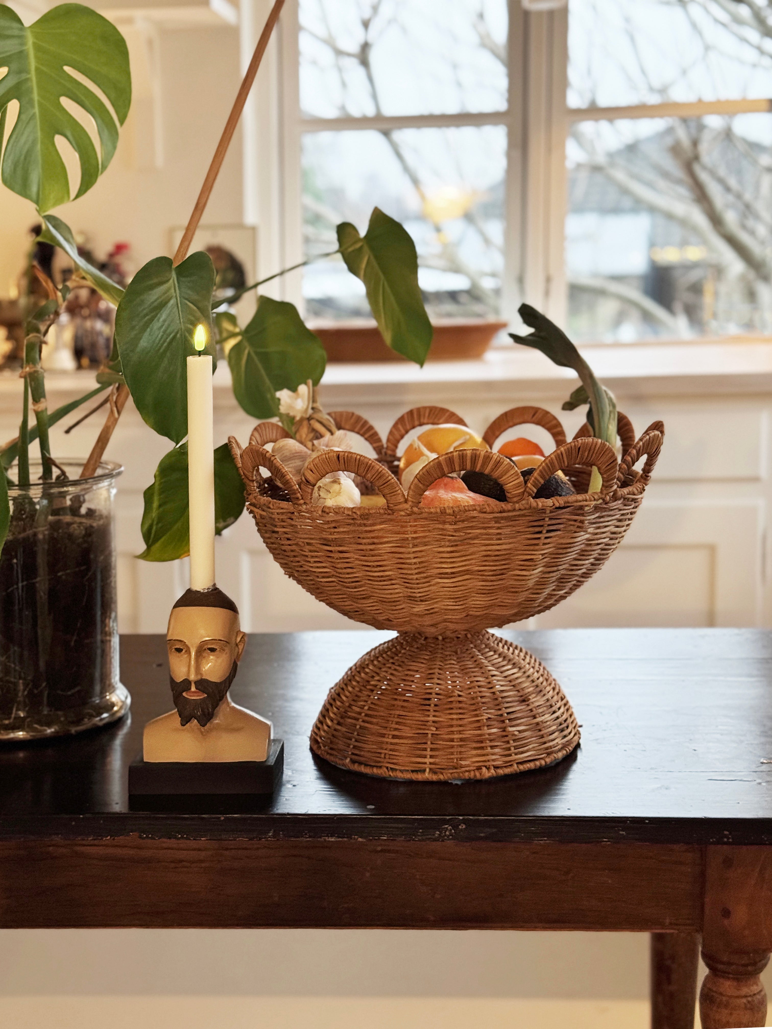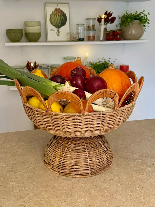 Large Rattan Bowl in rattan with scalloped edge