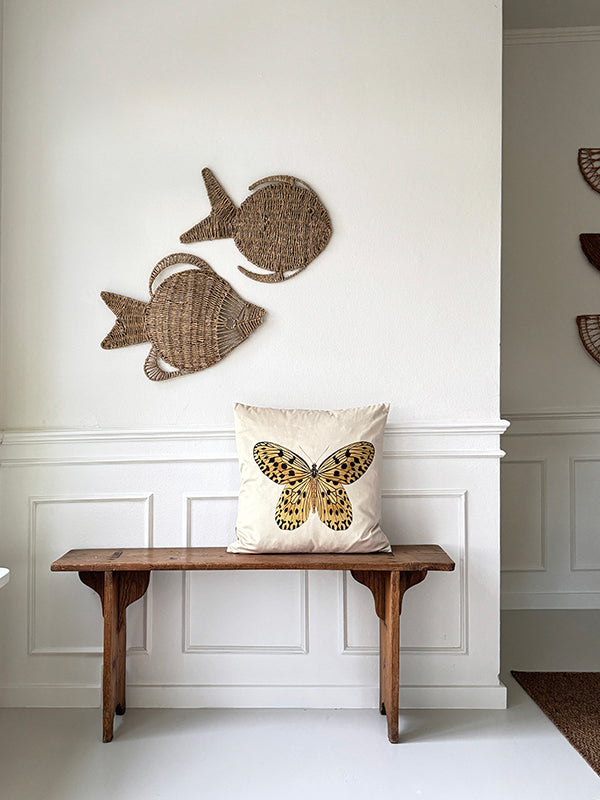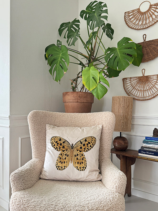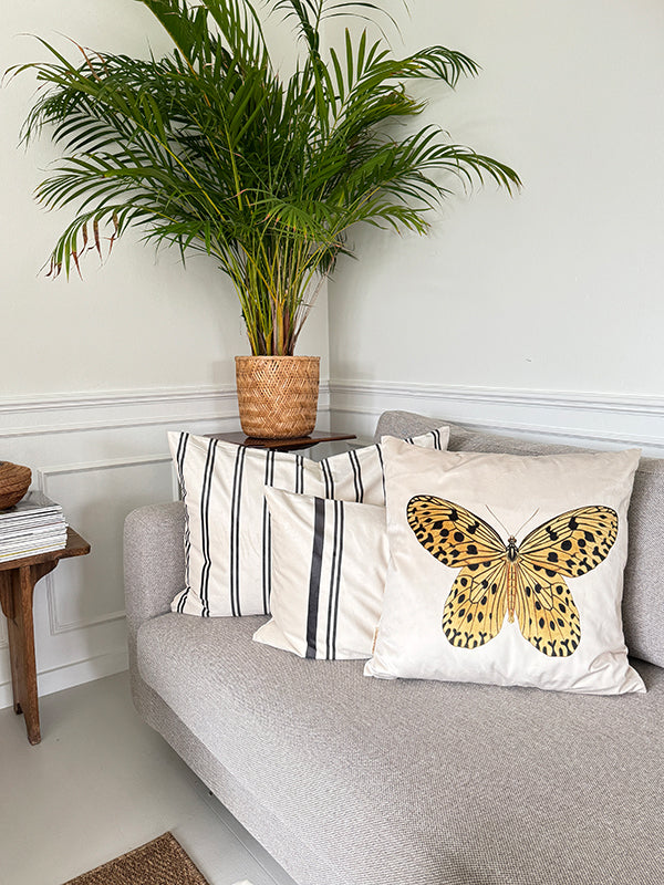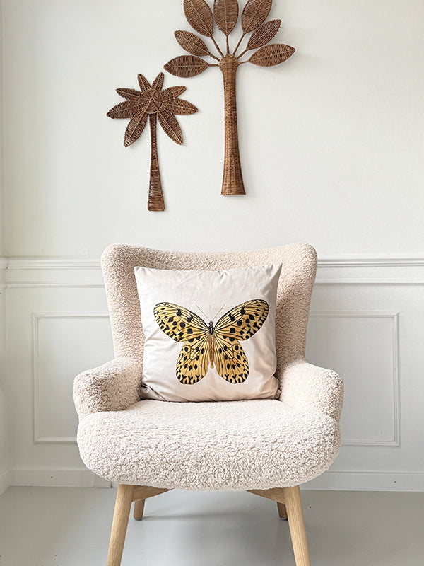 Velvet cushion cover w/piping - Yellow Butterfly #LA276