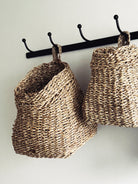 Tilføj naturlig charme til dit hjem med disse smukke hængende kurve i håndflettet søgræs.