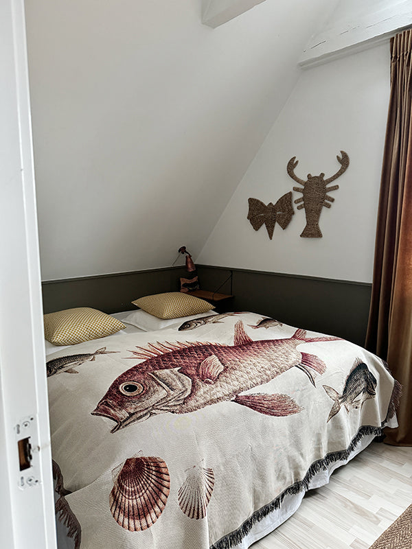 Med målene 160 x 200 cm er tæppet perfekt til at hygge sig med i sofaen, varme sig under på kølige aftener eller endda hænge på væggen som et fascinerende vægtæppe.