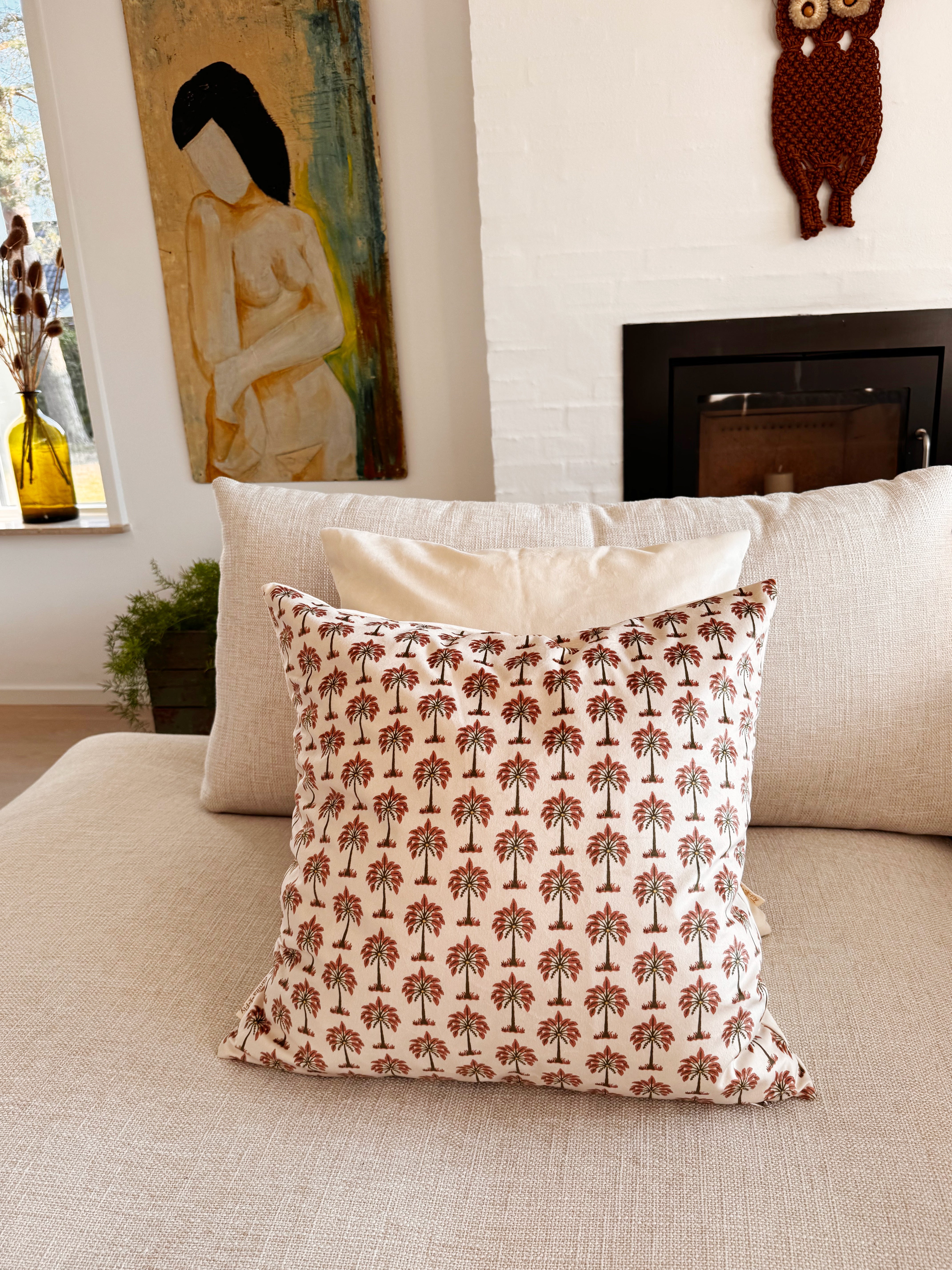 Pudebetræk i skøn velour med det smukkeste palme motiv.