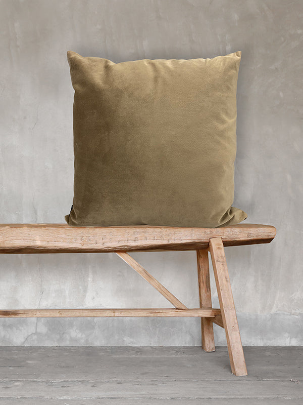 Ensfarvet velour pude – taupe